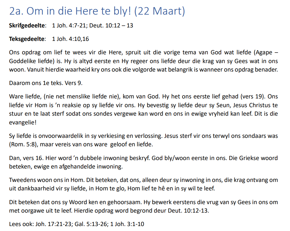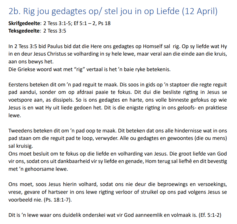 “Julle moenie aan hierdie sondige wêreld gelyk word nie, maar laat God julle verander deur julle denke te vernuwe. Dan sal julle ook kan onderskei wat die wil van God is, wat vir Hom goed en aanneemlik en volmaak is.”